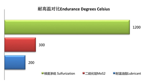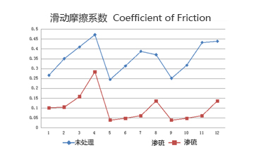 抗磨損 滾動摩擦系數降低14%~42%,滑動摩擦系數降低30%,耐磨性提高2~9倍,摩擦溫度降低5-9度。滲氮鋼滑動摩擦系數下降10.9%~24.1%。滲硫鋼球承載能力提高了33%,磨痕面積在相同載荷下僅為普通鋼球的10%。